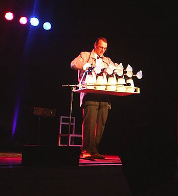 Herr Fröhlich mit der Pumpa-Orgel